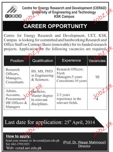 Apply as per details in job advertisement. Login to view further details of how to apply via https://www.jobz.pk online.