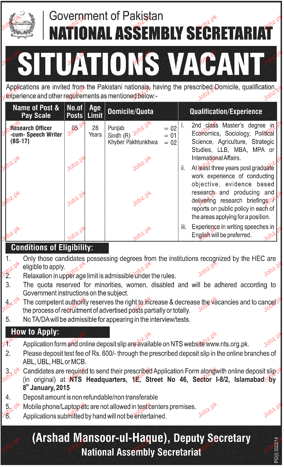 Apply as per details in job advertisement. Login to view further details of how to apply via https://www.jobz.pk online.