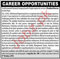 Apply as per details in job advertisement. Login to view further details of how to apply via https://www.jobz.pk online.