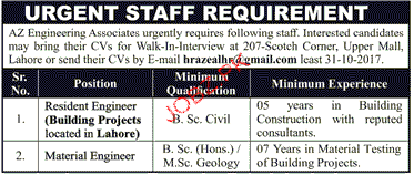Latest AZ Engineering Associates Engineering Posts Lahore 2025