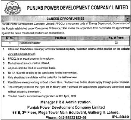 Vacancies in Punjab Power Development Company Limited Advertisement April 2022