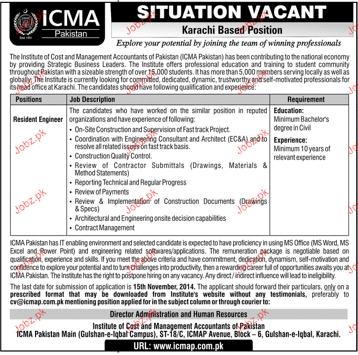 Resident Engineers Job In Institute Of Cost And Management