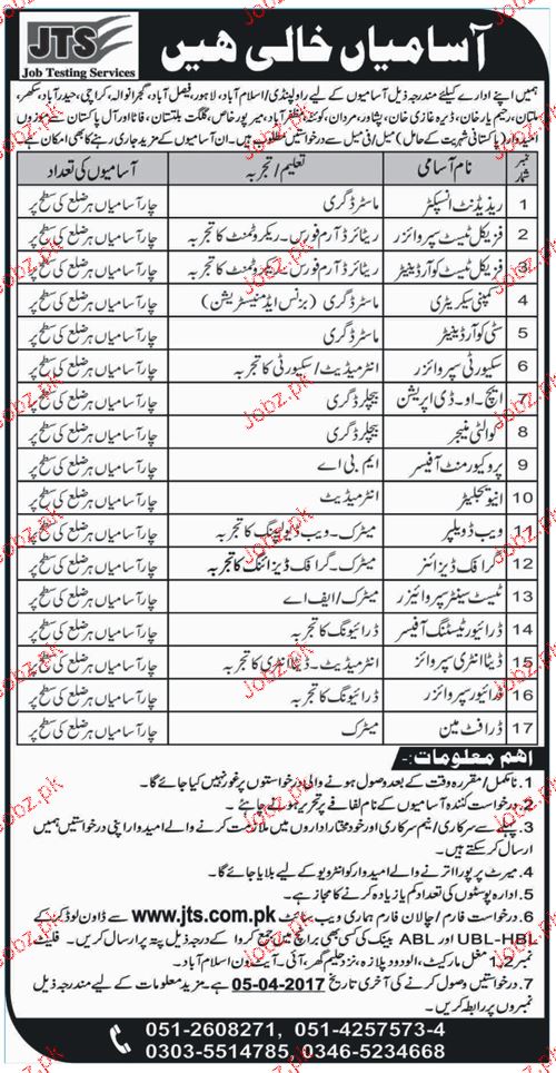 Apply as per details in job advertisement. Login to view further details of how to apply via https://www.jobz.pk online.