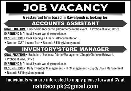 Restaurant invites applications for job positions advertised in daily Express dated 5 June 2022 for following vacancies in Rawalpindi, rawalpindi Punjab Pakistan.