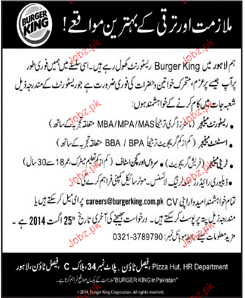 Apply as per details in job advertisement. Login to view further details of how to apply via https://www.jobz.pk online.