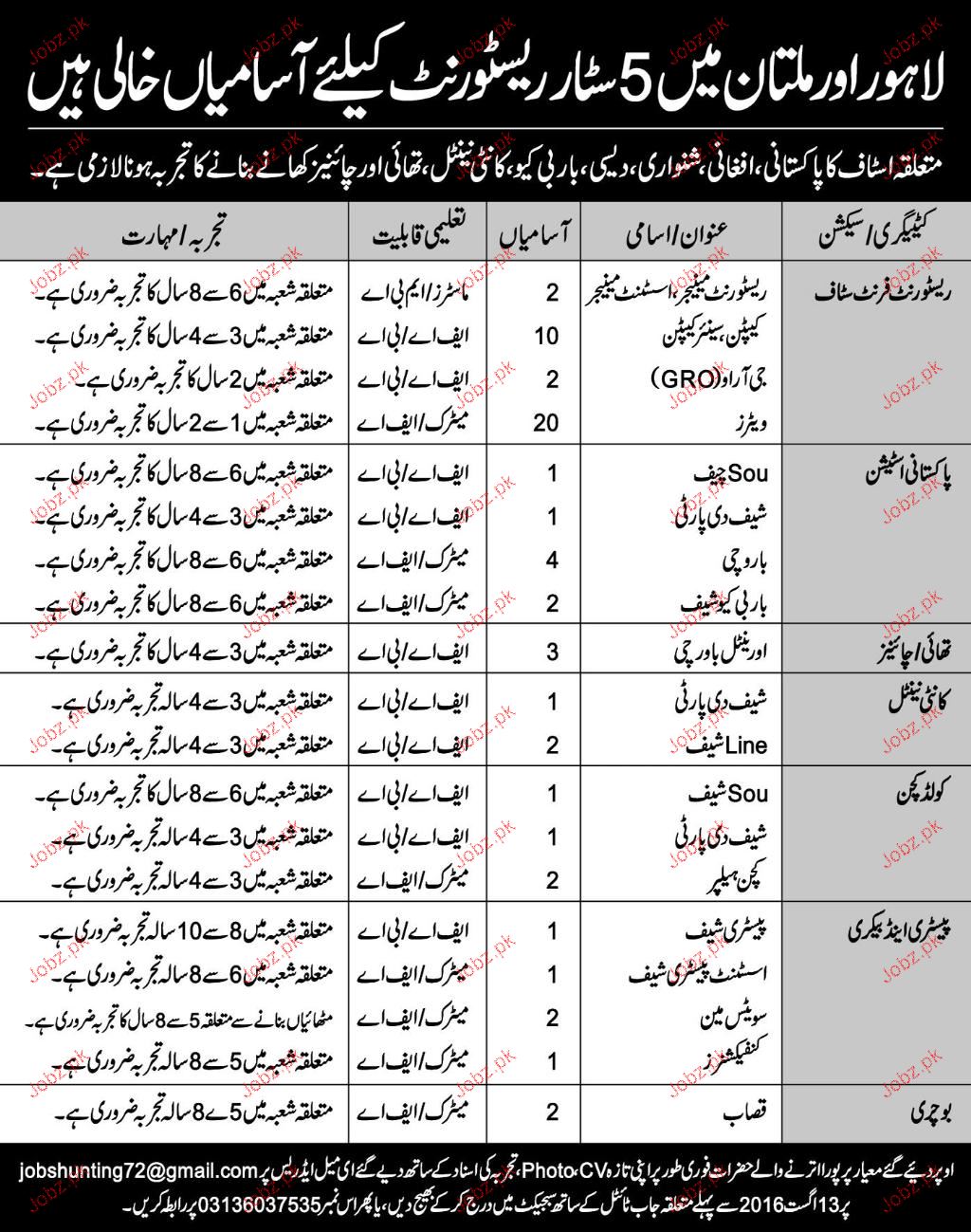 Apply as per details in job advertisement. Login to view further details of how to apply via https://www.jobz.pk online.