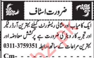 Restaurant Staff Jobs 2020 For Quetta Balochistan
