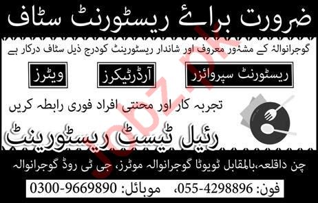 Restaurant Supervisor Order Taker Jobs In Gujranwala