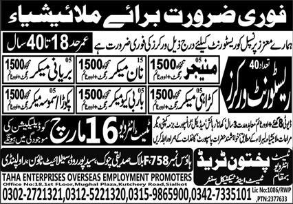 Apply at Taha Enterprises latest Overseas jobs in Hotel and departments before closing date which is around March 16, 2024 or as per closing date in newspaper ad. Read complete ad online to know how to apply on latest Taha Enterprises job opportunities. Some jobs in Taha Enterprises may require skills like Cooking / Baking, Cooking and Management. Salary varies from 90000. Earn extra money with overtime. On job transport, medical and accommodation facility is provided.