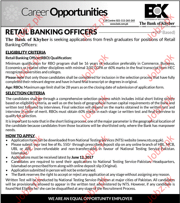 Apply as per details in job advertisement. Login to view further details of how to apply via https://www.jobz.pk online.