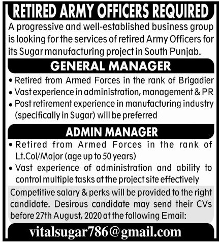 Retired Army Officers Jobs 2020 In Multan