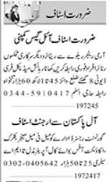 Apply as per details in job advertisement. Login to view further details of how to apply via https://www.jobz.pk online.