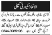 Security Company invites applications for job positions advertised in daily Khabrain dated 10 January 2025 for following vacancies in Islamabad, islamabad Islamabad Pakistan.
