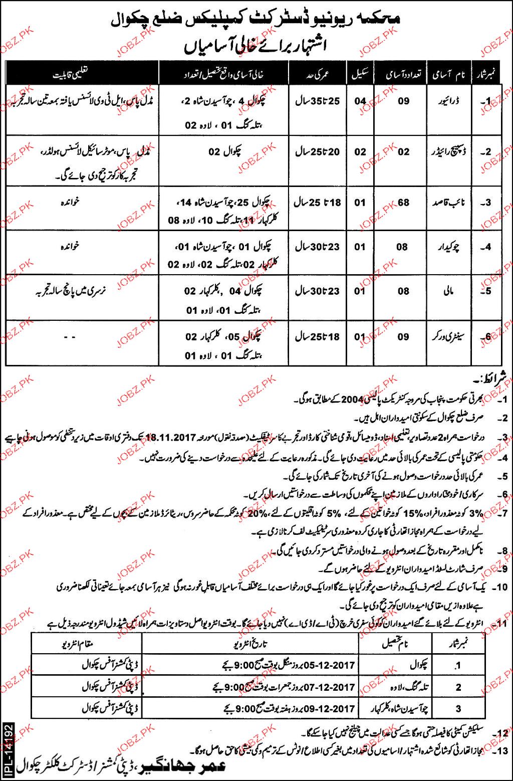Latest Revenue Department Admin Clerical Posts Chakwal 2025