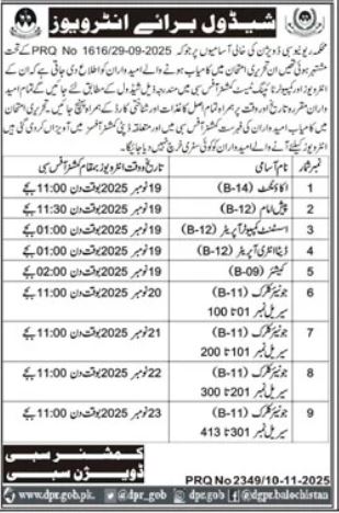 Vacant posts including data entry operator, assistant computer operator, clerk, accountant, cashier and pash imam are announced in Revenue Department Sibi, sibi Balochistan Pakistan as per 11 November 2025 advertisement in daily Jang Newspaper. Persons with Bachelor, Intermediate and Matric etc. education can apply.