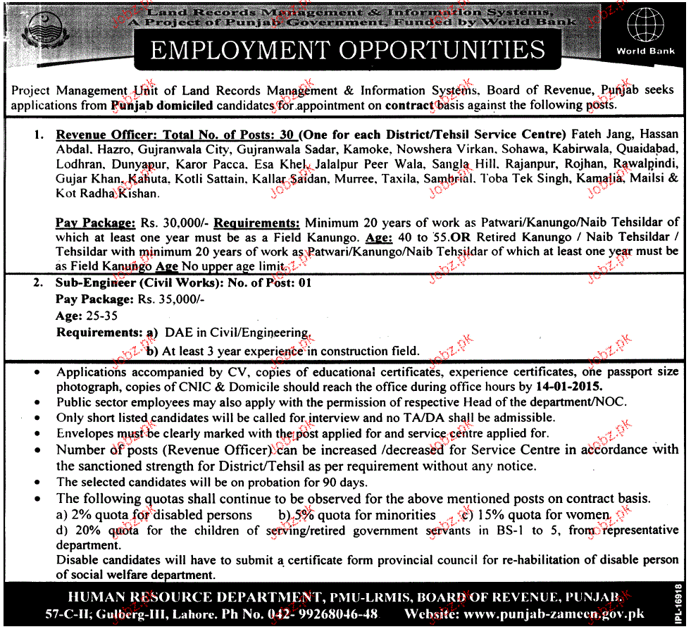 Apply as per details in job advertisement. Login to view further details of how to apply via https://www.jobz.pk online.