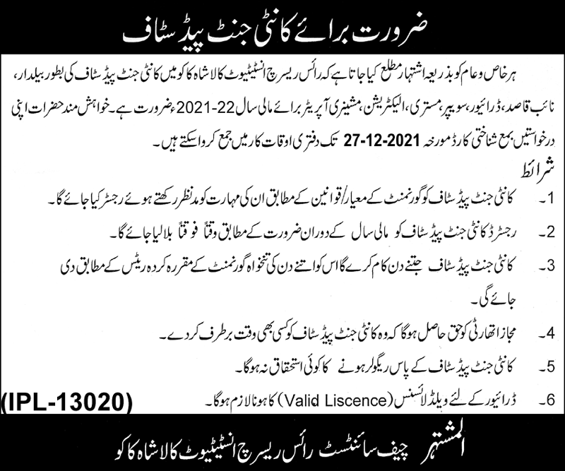 Rice Research Institute Contingent Paid Staff Jobs 2021