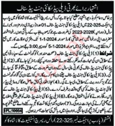 Rice Research Institute is looking for candidates for following posts as per job advertisement published in daily Daily Pakistan Newspaper of December 17, 2023 for location Sheikhupura, sheikhupura Punjab Pakistan: