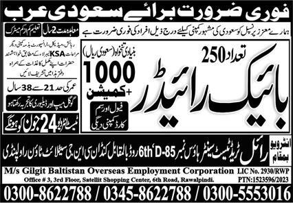 Royal Trade Test & Training Center Jeddah, riyadh Saudi Arabia invites applications from eligible candidates for the post of bike rider and rider as per advertisement of June 22, 2023 published in daily Express Newspaper. Preferred Education is Matric and Intermediate etc.