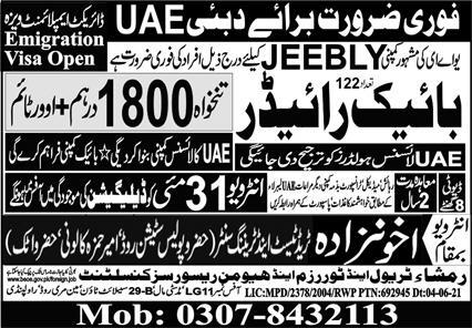 Latest Driving jobs and others Overseas jobs in Akhunzada Trade test & Training Center closing date is around May 31, 2024, see exact from ad. Read complete ad online to know how to apply on latest Akhunzada Trade test & Training Center job opportunities. Learn today skills like Courier, Motorcycle Courier and Delivery to apply confidently on these Akhunzada Trade test & Training Center jobs. Salary varies from 137000. Earn more by overtime. Employer provides accommodation, transport and medical facility.