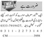 Private Company is looking for candidates for following posts as per job advertisement published in daily Dunya Newspaper of December 14, 2022 for location Karachi, karachi Sindh Pakistan: