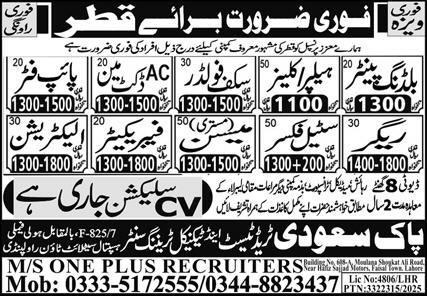 Pak Saudi Trade Test & Technical Training Center is looking for candidates for following posts as per job advertisement published in daily Express Newspaper of February 18, 2025 for location Doha, doha Qatar: