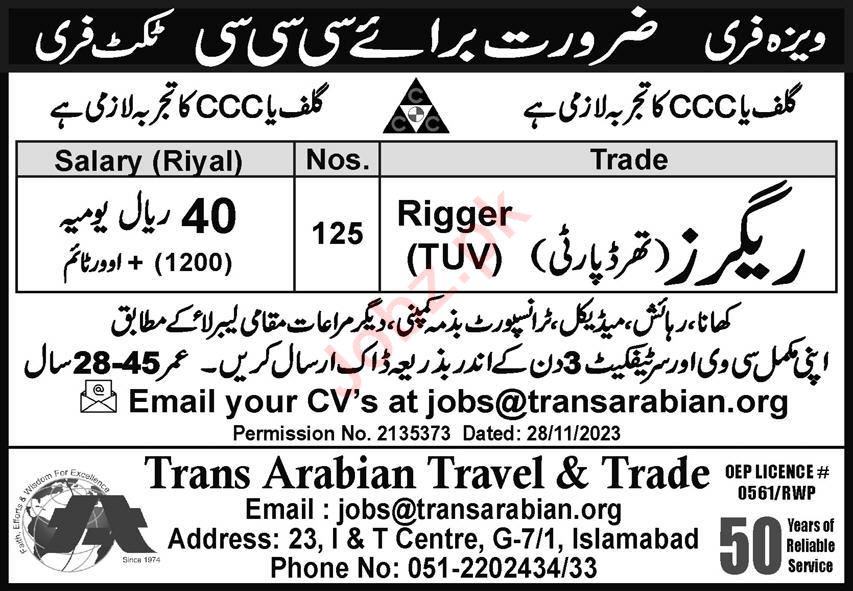 Latest Management jobs and others Overseas jobs in Trans Arabian Travel & Trade Company closing date is around January 17, 2024, see exact from ad. Read complete ad online to know how to apply on latest Trans Arabian Travel & Trade Company job opportunities. Free medical, transport, accommodation and food may be available.
