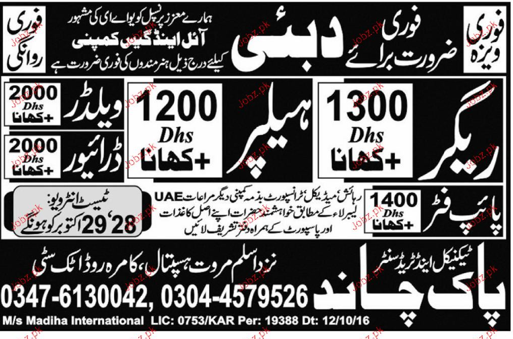 Latest Pak Chand Technical and Trade Center Industrial Posts Dubai 2025
