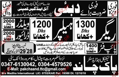 Latest Pak Chand Technical and Trade Center Industrial Posts Dubai 2025