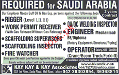 Riggers, Scaffolding Supervisor And Fire Watchers Wanted