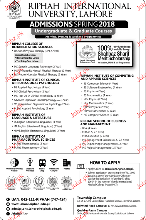 Ripha International University Admission in MS in Speech language Pathology, MS Orthopedic Manual Physical Therapy and MS Menuo Muscular Physical Therapy in Lahore. Read newspaper ad for exact details.