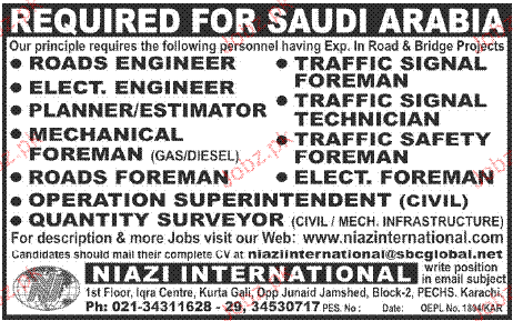 Roads Engineers, Electrical Engineers Job Opportunity