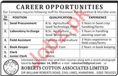 Latest Roberts Cotton Associates Limited RCAL Management Posts Khanewal 2025