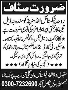 Vacancies in Roha Textile Industries Advertisement December 2020