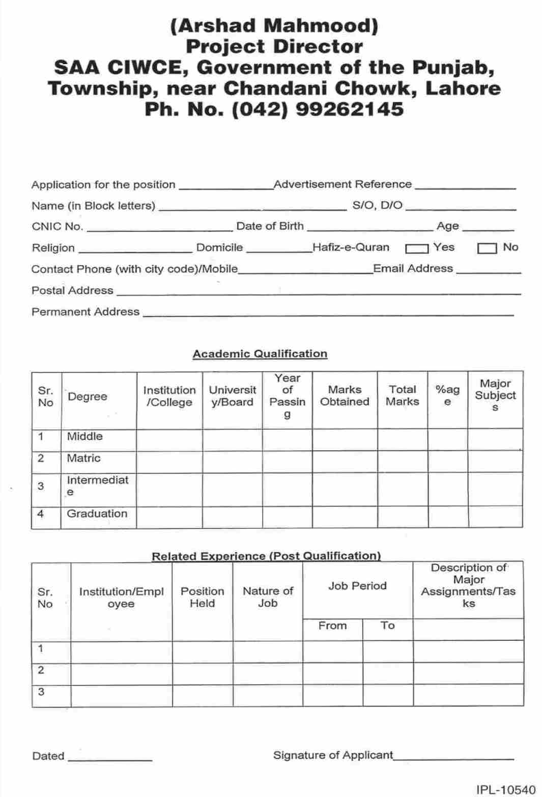 SAA CIWCE Centre for the Improvement of Working Conditions & Environment , Environment Protection Department Lahore, Government of the Punjab requires candidates for the posts of Engineer, Sector Specialist, Electrical Engineer, Mechanical Engineer, Chemical Engineer, Ergonomics Engineer, Civil Engineer, Fire Engineer, Biological Specialist, Physical Instructor, Construction Engineer, Public Health Specialist, IT Manager, Assistant Admin, Assistant Accounts, Monitoring Officer, Evaluation Officer, Assistant Audit Officer, Assistant, Account Assistant, Instrument Technician, Electrician, Driver, LTV Driver, HTV Driver, Security Guard, Office Attendant, Sweeper.