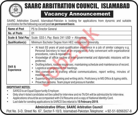 SAARC Arbitration Council Islamabad Jobs 2019 For Secretary