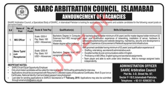 Latest SAARC Arbitration Council Management Posts Islamabad 2025
