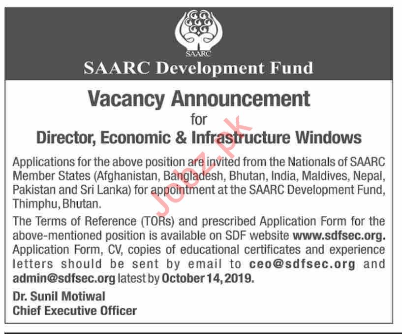 Vacancies in SAARC Development Fund Secretariat Advertisement September 2019