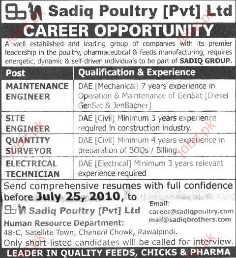 Sadiq Poultry Pvt. Limited Job Opportunity