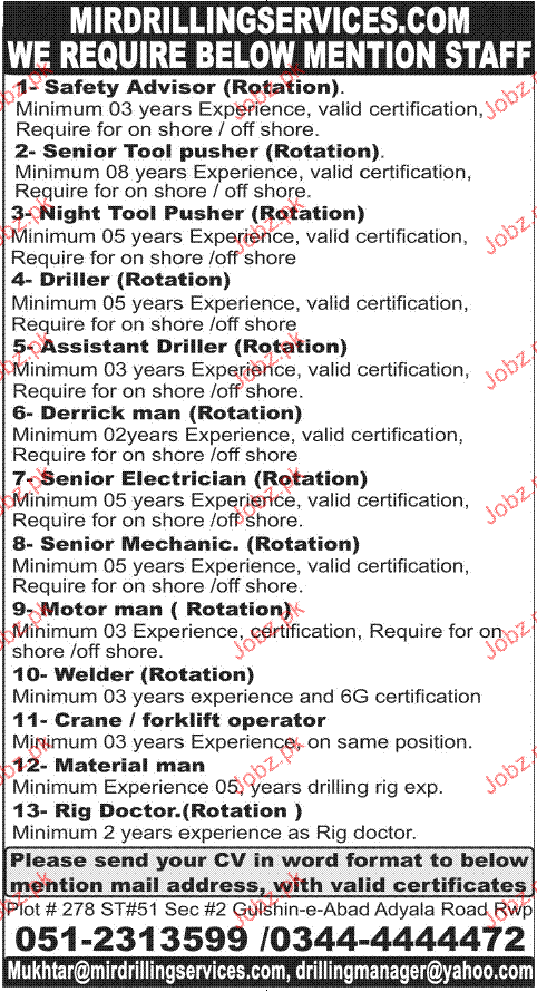 Apply as per details in job advertisement. Login to view further details of how to apply via https://www.jobz.pk online.