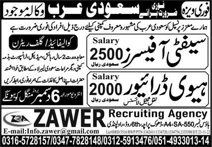 Zawer Recruitment Agency jobs advertisement dated about 3 December 2022 in daily Express Newspaper invites application for the vacant post of htv driver, safety officer, heavy driver and driver in Madina, dammam Saudi Arabia. Candidates with Intermediate and Matric etc. educational background will be preferred.