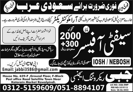 Jabbi Recruiting Agency is looking for candidates for following posts as per job advertisement published in daily Express Newspaper of September 2, 2022 for location Dammam, al khobar Saudi Arabia: