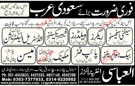 Safety Officers, Welders, Rigors, Fabricators Job Opportunit
