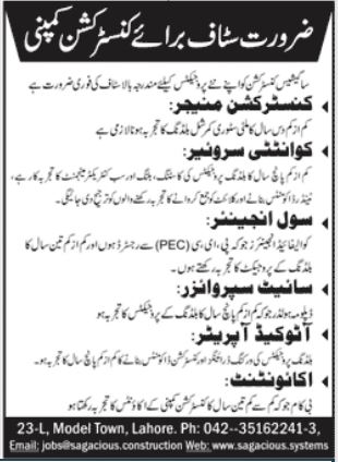 Latest Sagacious Group Construction Posts Rawalpindi 2025