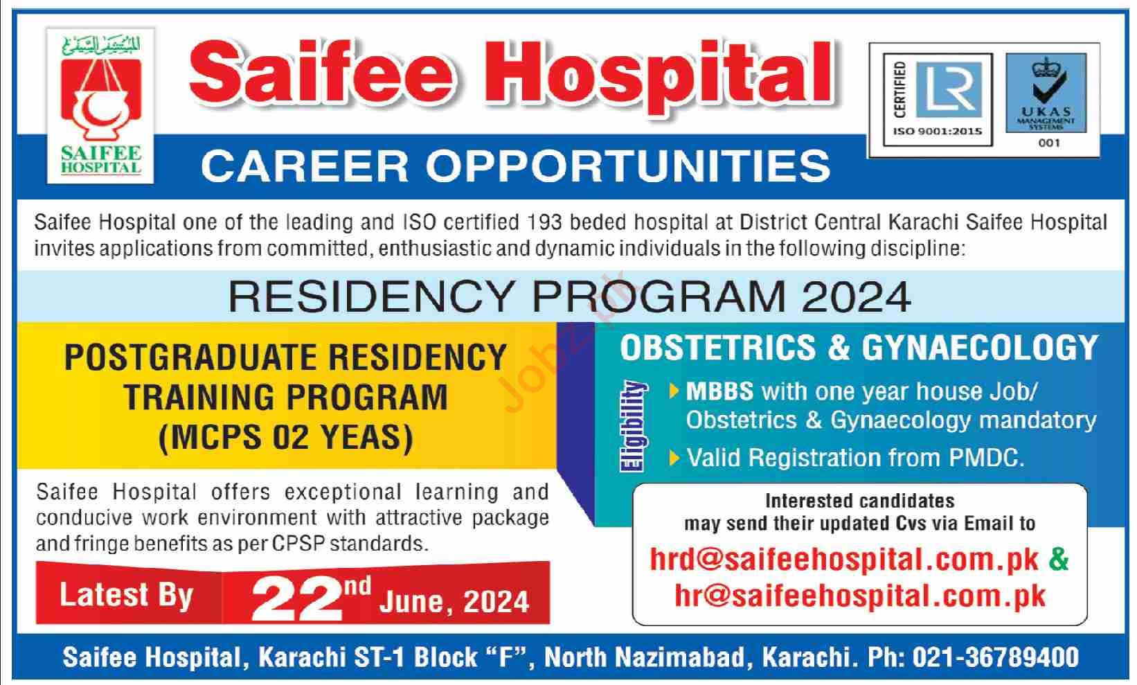Saifee Hospital is looking for candidates for following posts as per job advertisement published in daily Dawn Newspaper of June 9, 2024 for location Karachi, karachi Sindh Pakistan:
