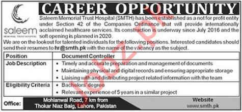 Vacancies in Saleem Memorial Trust Hospital Advertisement November 2019