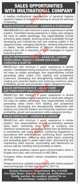 Latest Private Company Sales Posts Karachi 2025