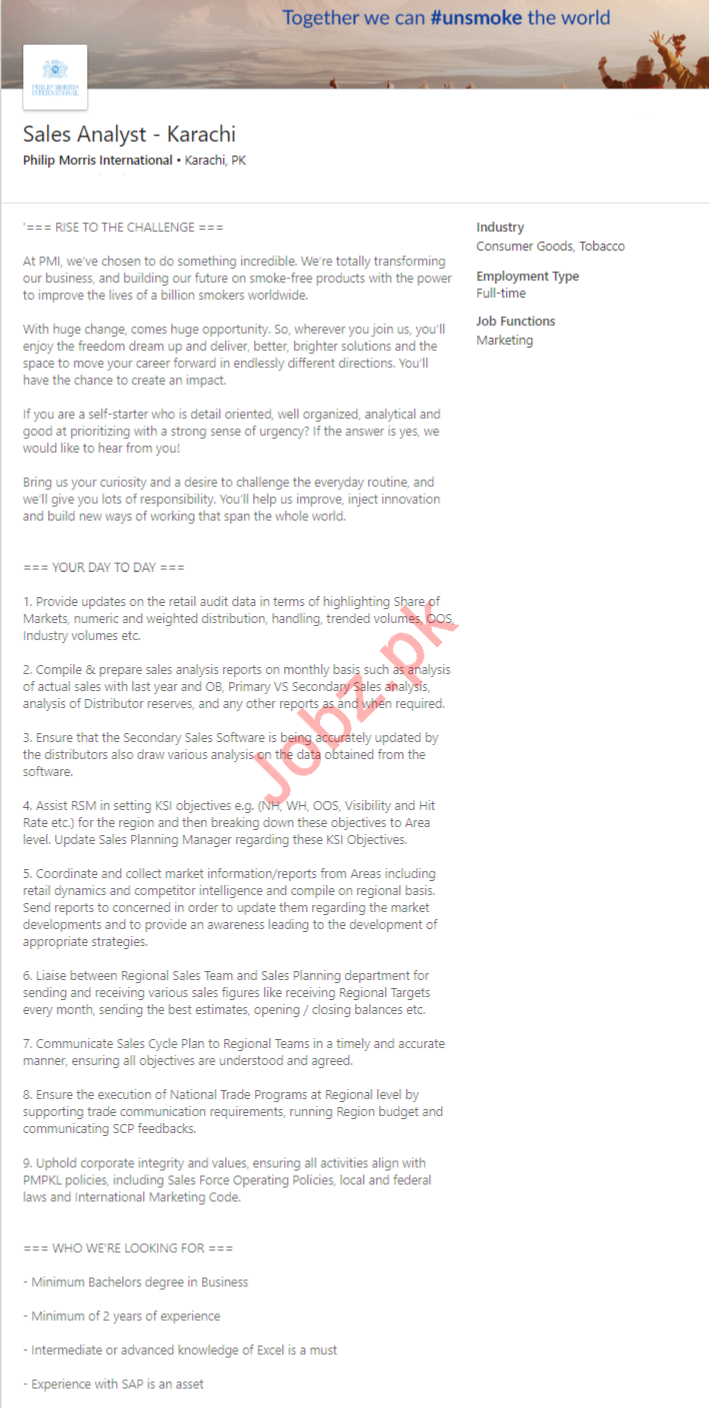 Apply as per details in job advertisement. Login to view further details of how to apply via https://www.jobz.pk online.