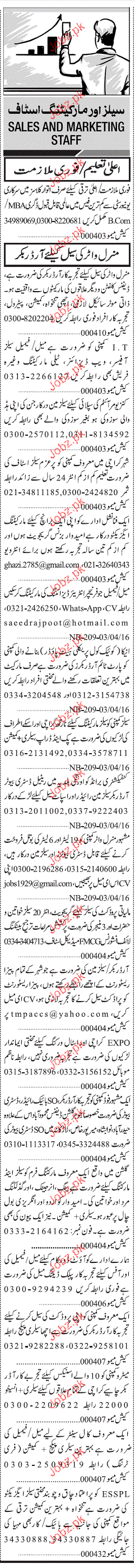 Sales and Marketing Staff are required in Karachi.