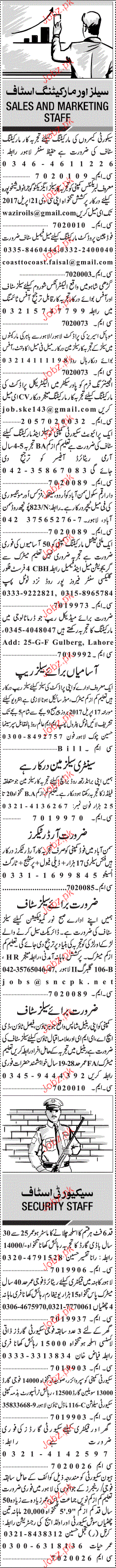 Sales and Marketing Staff are required in Lahore.